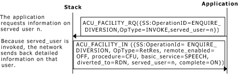To query the network for status information, the application sends an acu_ss_enquire_divert_invoke extended data structure to the stack in an ACU request message, using the ACU_MGMT_SAPI.