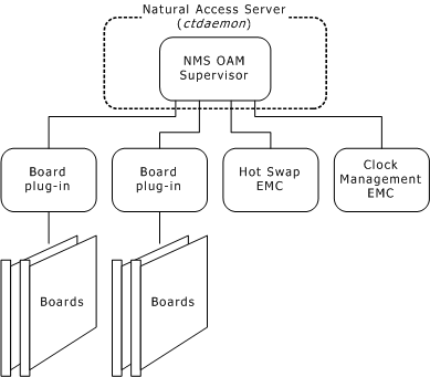 NMS Communications operations, administration, and maintenance (OAM) software is the component of the Natural Access development environment that enables you to administer and maintain NMS resources in a system. NMS OAM can manage hardware components such as NMS boards, or software components such as the NMS Hot Swap and H.100/H.110 clock management processes.