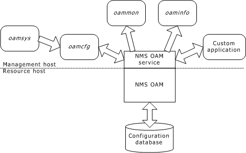 In a multiple-host NMS OAM configuration, these utilities reside on the management host and communicate with the resource hosts over the IP network.