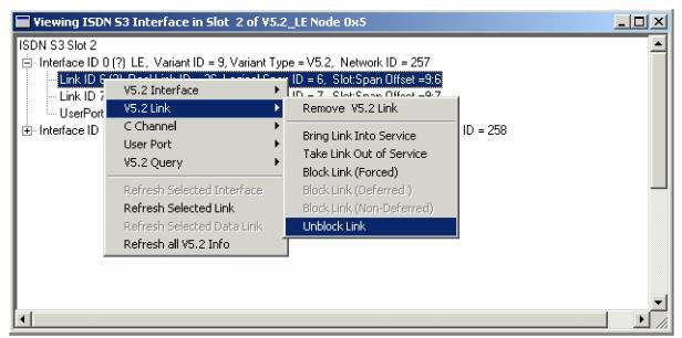 2 Right-click the blocked link and select V5.2 Link® Unblock Link as shown in the next screen shot.