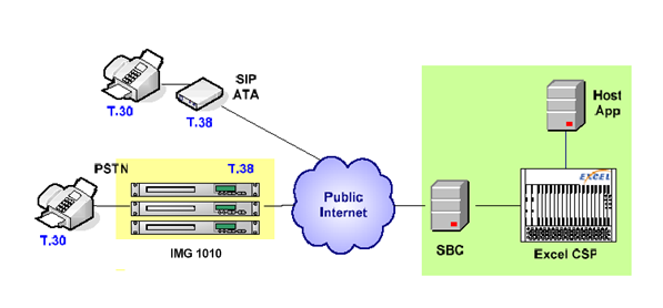 Figure Network Architecture below shows a network architecture where the external points want to establish a T.38 fax session with each other. A fax call is typically started as an audio session and then switches to T.38 once the IMG or SIP ATA detects the preamble tone. The T.38 parameters are represented in the SDP and conveyed mid-session through the SIP RE-INVITE mechanism.