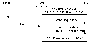 3. Upon successful completion of the maintenance blocking procedure, the CSP alerts the host by sending a PPL Event Indication message. The PPL Event Indication will include an SS7 Parameters ICB containing parameters from the BLA. The host should not initiate any outgoing call without first sending a PPL Event Request message of Maintenance Unblock.
