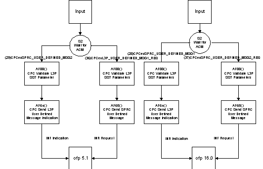 To facilitate the passing of user-defined ISUP messages, add events and atomic functions to ISUP CPC and L3P CIC. L3P CIC Atomic Function (AF) 99 allows L3P to send a user-defined ISUP message to ISUP. ISUP CPC AF 64 sends an incoming user-defined ISUP message to L3P. AF 65 sends an outgoing user-defined ISUP message to SPRC. For an example of L3P CIC customization, see L3P CIC Send INF/Receive INR and L3P CIC Send INR/Receive INF.