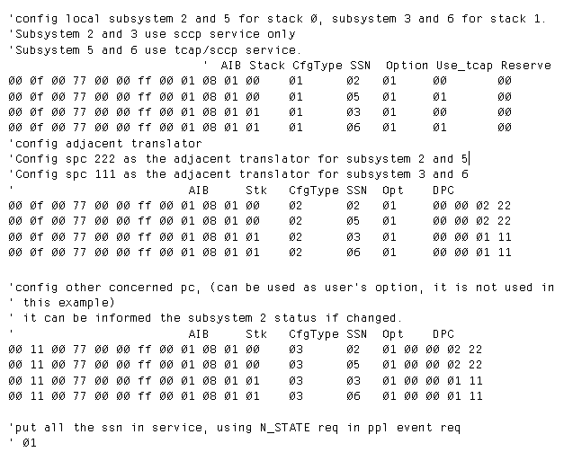 • "unitdata.cfg" is an example of using SCCP N-UNITDATA service.