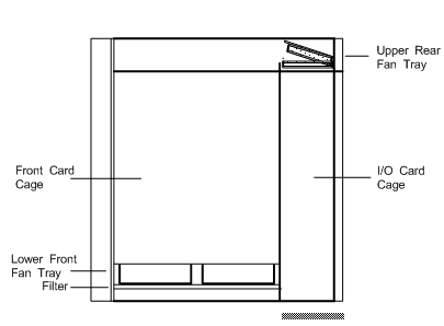 This shows the approximate location of the fan trays and the front and rear card cages.