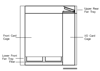 This shows the approximate location of the fan trays and the front and rear card cages.