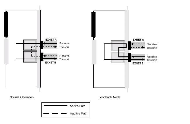 Loopback Mode shows how EXNET® ports on the EXNET-ONE card are put in loopback mode because of a failure in an EXNET® ring segment.