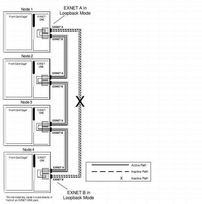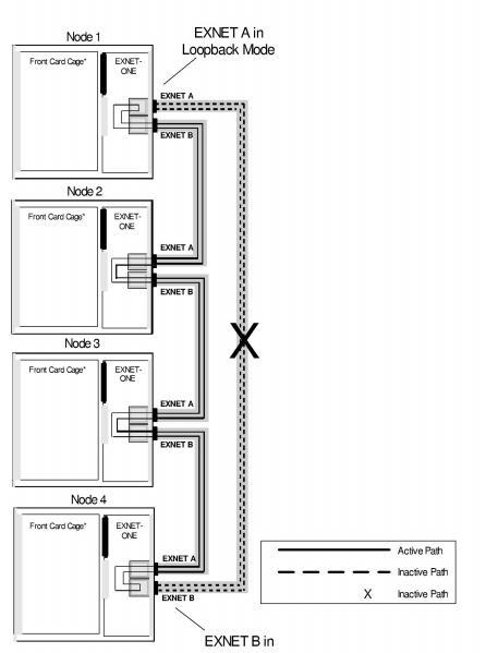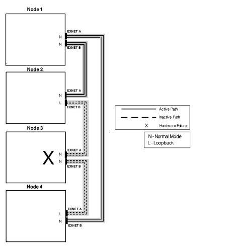 • The node connected to the failed node’s EXNET B port loops back its EXNET A port.