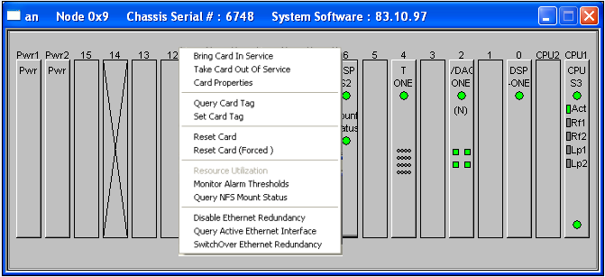 Right-click the DSP-S2 card and select the menu option, Disable Ethernet Redundancy.