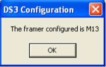 A message box displays the current DS3 framer, which would be CBIT or M13. Click OK to close the message box.