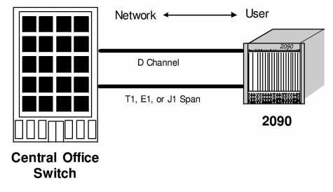 The figure below shows an ISDN Point-to-Point Connection with an Excel platform connected to a central office switch.
