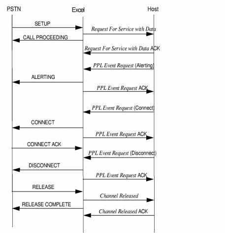 For a network-initiated release, a DISCONNECT is received. If the appropriate PPL configuration byte is set, release is reported to the host in a PPL Event Indication message. It could be parsed for access to the IEs by the application. By default, the Excel platform returns the RELEASE message and once the RELEASE COMPLETE is received the Excel platform sends the Channel Released message to the host.