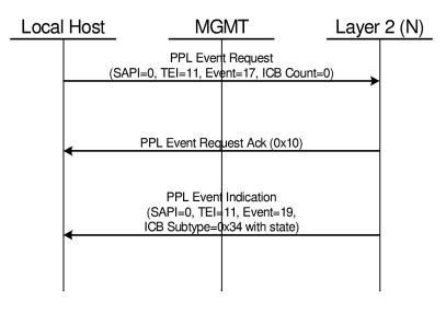 The figure below illustrates a query for the state of a specific TEI/SAPI combination on a D channel. The PPL Event Request message contains the following:
