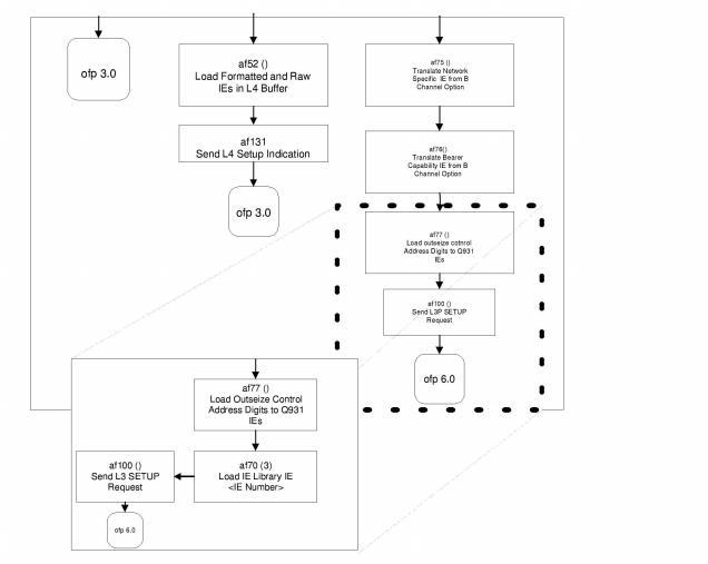 L3P Call Reference DSD - Page 1 shows page 1 of the L3P Call Reference State Machine modified to use AF 70 to insert the IE into the outgoing SETUP message to the network. The first argument is the IE Library entry number (3). in the ISDN Interface Configure message example.