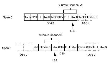 Multiple subrate channels can be established within a single DS0, as shown in the table below. The host manages connections to ensure that subrate channels within a single DS0 do not overlap (That the same bit is not being used in two different subrate channels).