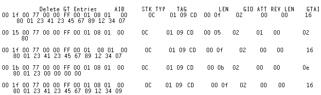 Use the following TLV to delete the GT entries indicated by the Group ID, GT Attribute, Global Title Address Information (GTAI) Length, and GTAI.