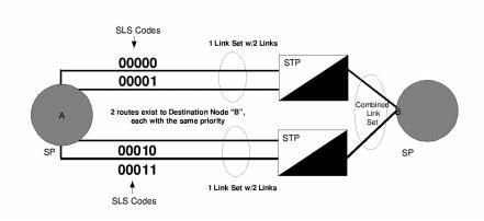 A combined link set establishes the availability of alternate routing configurations that can each serve as a primary path, providing load sharing across the network. Within a combined link set, which can maintain up to a total of 32 links in any combination of link sets, every link is given an equal priority in the routing assignments to the same destination. This means that the more paths that exist to a specific destination in a network, the more reliably messages can be transmitted, even when one or more configured routes fail or experience power outage for any reason.
