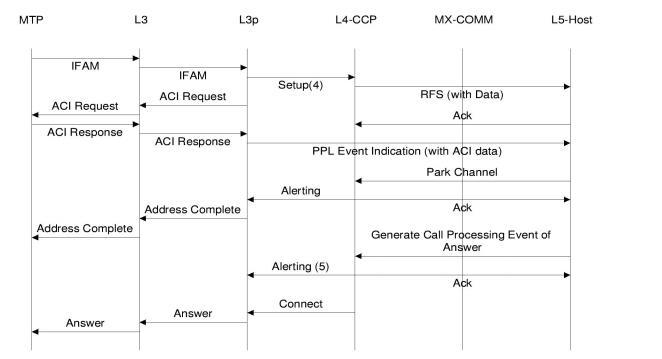 The following is a call flow diagram in which a successful call is originated from the host. All address digits are present in the Outseize Control message, therefore an IFAM is issued to the lower layers.