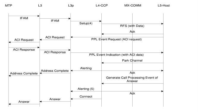 This call flow depicts a situation where a Config Byte has been set to allow the automatic generation, via L3P, of Additional Call Information Requests (ACI) to the calling network.