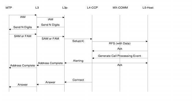 A Digital Main Switching Unit (DMSU) must be able to process IAM and IFAM messages since this type of Excel platform may appear between two LSUs. The more complicated case is the reception of an IAM. L3P IUP analyzes the number of Address digits received. If the required number of digits has not been received within a configurable amount of time, as defined via Config Byte settings, the appropriate number of Send N Digit messages will be issued until the digit count is satisfied.