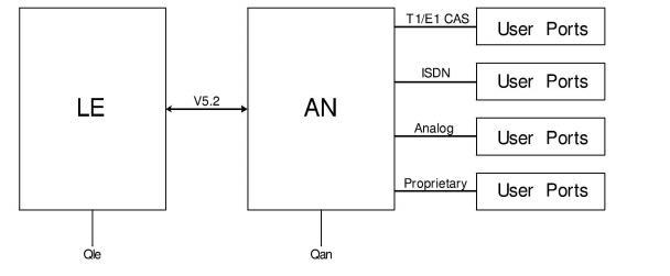 The V5.2 LE is the "network side" that resides at an End Office (EO) and provides the EO and Mobile Switching Center (MSC) functionality. This functionality includes additional CLASS features and services typically provided by an LE. The AN receives V5.2 data from the LE, then passes it to two-wire analog, ISDN, Frame Relay, Wireless, Fiber Optic, or any other Customer Premises Equipment (CPE).