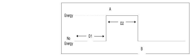When energy (A) is first detected, the host receives a Call Processing Event of "Energy Result Report" with Data[0] indicating "Energy Detected." Data[1] indicates the duration of the preceding period of no energy (D1).