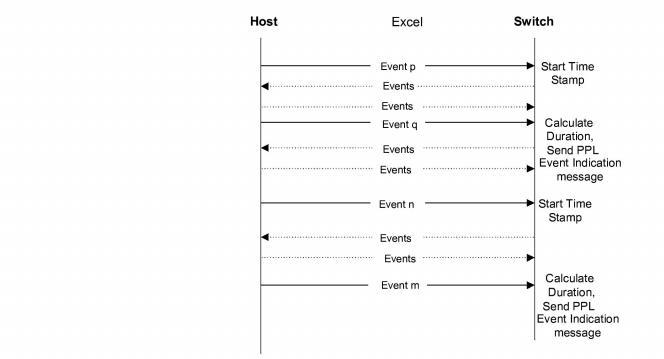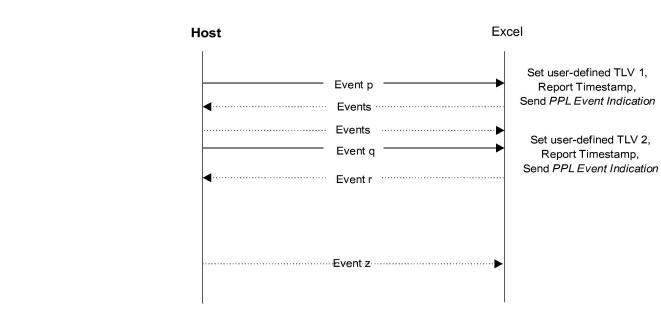 In the next figure, the host receives a single PPL Event Indication message that contains the user-defined TLVs and the timestamps, in the same order in which they were created. Based on the user-defined TLVs, the host can match the timestamps to events.