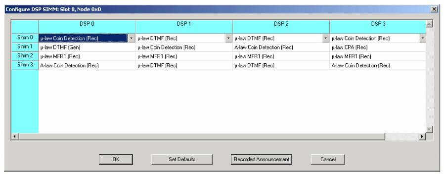 To specify all the default values of all the DSP-ONE SIMMs, click Set Defaults. See the next screen shot.