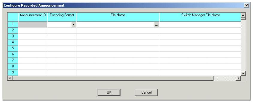8 You do not specify the SwitchManager file name. Click OK to close the Recorded Announcement dialog box.