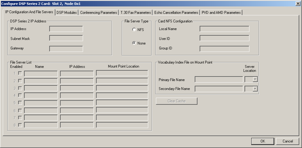 You are here: SwitchKit CSA User’s Guide > 6 Configuring Resource Cards > Configuring a DSP Series 2 Card