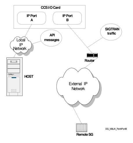 • The Ethernet B port on the CCS I/O card is for M3UA traffic. Configure the gateway address on this port so that it can communicate with other networks.