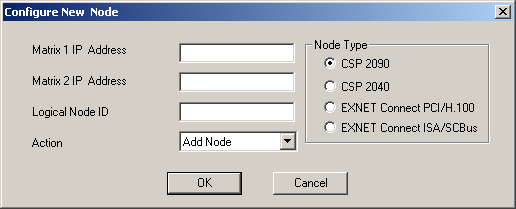 3 Enter the matrix IP Address(es) and Logical Node ID. The valid range of logical node IDs is: 0-254. Select the node type you want to add by clicking the corresponding radio button.