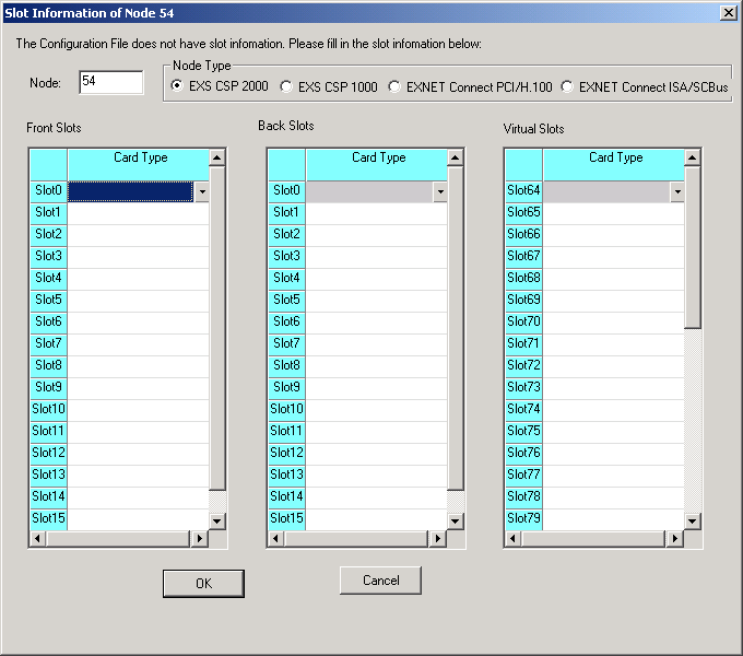 4 Select the card types for the slots corresponding to your node and click OK when you’ve provided all of the card information.