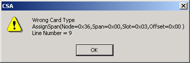 To get back to the Slot Information... of your node you can select No and start this procedure again. If you want to continue, click Yes. You will be forced to click Yes numerous times to allow CSA to process each message in your configuration file. If you want to continue without receiving the error messages, click Yes, do not show any more warnings. In selecting either of the Yes options, you can add the cards to your node later. See Adding Cards to a Node.