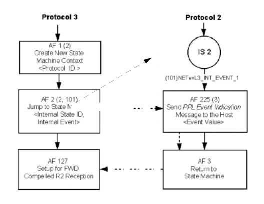 The ability to switch between several PPL protocols is provided by AF 2, which invokes a primitive resulting in the channel using a new set of protocol tables. It is the responsibility of the "secondary" protocol to return to the primary protocol (protocol assigned to the channel).