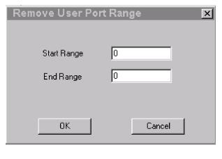 To remove a user port range, highlight the user port, right-click, and then select the menu, User Port®Remove User Port Range.