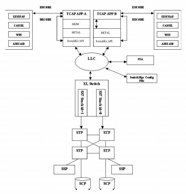 The SwitchKit TCAP Abstraction Layer ( is used to create a generic view of the TCAP layer, so that the underlying stack can be used with the TCAP C++ API. The SKTAL API allows the SwitchKit TCAP user to easily interface with Intelligent Network (IN) application layer protocol APIs (GSM-MAP, ANSI-41, WIN, and CAMEL) provided by IntelliNet Technologies Inc.