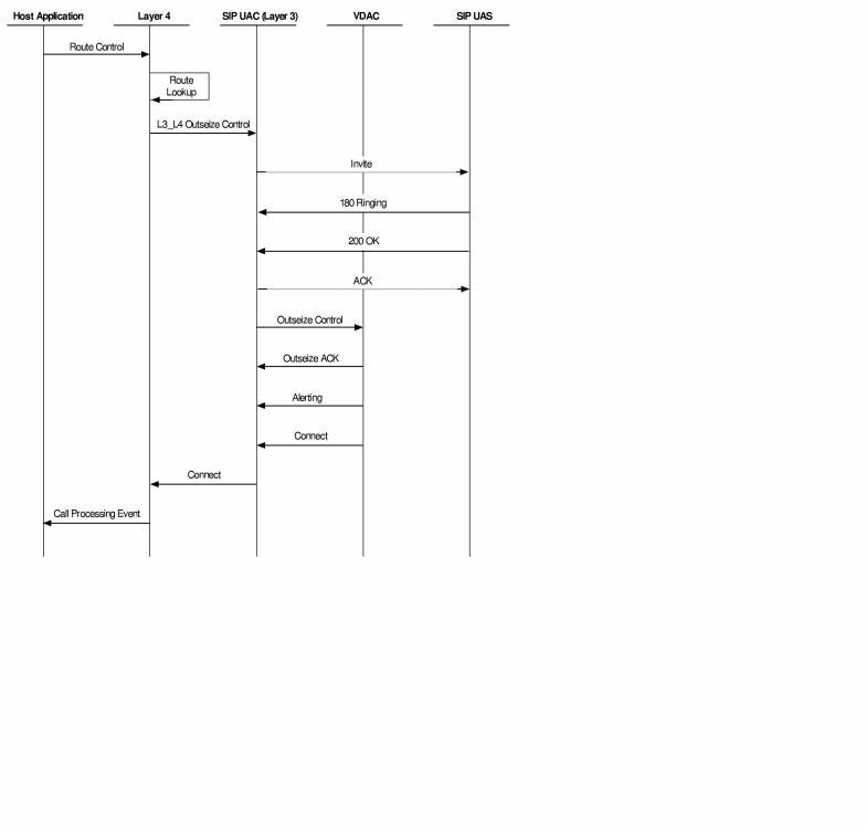 5. The SIP User Agent Client initiates the outbound call using a SIP INVITE message. For H.323 calls, Layer 3 sends a SETUP message.