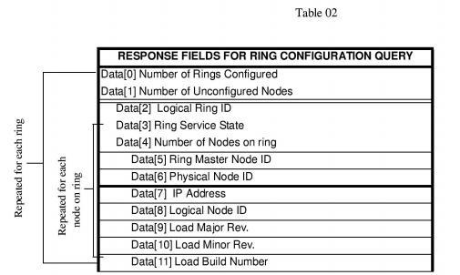 Data (also see Response Data section below this table) For a Ring Configuration Query, see the information below this table For a Ring Status Query, see the information directly below: