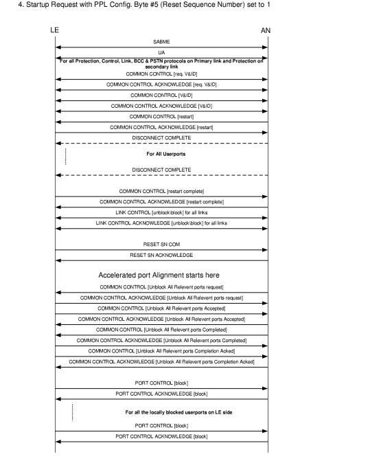Important! In the Startup procedures, DISCONNECT COMPLETE messages are shown as broken lines, indicating that these messages apply for a restart and for all cases when the interface goes down and comes back up.