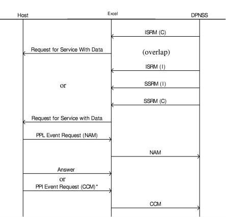 An ISRM (I) will be followed by a sequence of SSRM(I), concluded by an SSRM(C). The concatenated data from these service request messages will then be passed to the host in a PPL Event Indication message.
