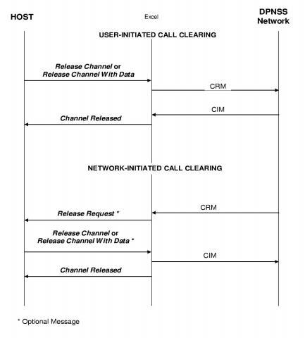 The following call flows depict a User-initiated DPNSS Virtual Call Clear Request Message and then a Network-Initiated DPNSS Virtual Call Clear Request Message.
