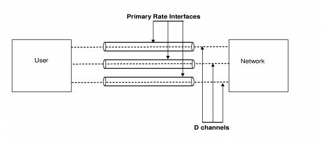 Figure 8-2 Three Primary Rate Interfaces Controlled by 1 D channel