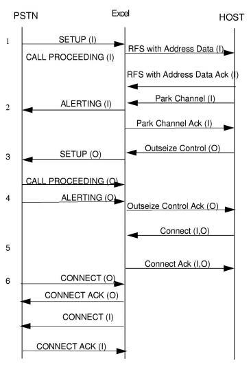 Normally, the host attempts an outgoing call (Outseize Control) to connect to this incoming call. If a Connect message is sent to the Excel platform after a successful seizure, the answer propagates to the incoming side (CONNECT) assuming the Answer Supervision Mode Configure message is set to Propagate Answer To Distant End (default).