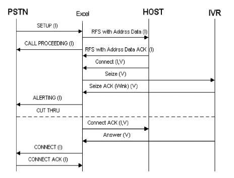 1. Upon receiving the SETUP from the CO, the IEs are validated and the CALL PROCEEDING is automatically returned. The SETUP is transformed into the Request for Service with Address Data and sent to the host.