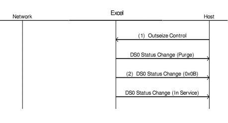 2. The DS0 Status Change message is sent to the host with a Purge Reason of 0x0B, FEM Outseize Acknowledgment Timeout.