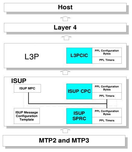 Assuming no error conditions occur, ISUP consults the ISUP Message Configuration Template to identify the message and translate the raw data into the format of an SS7 Parameters ICB to pass to L3P. |