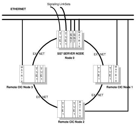 • Each remote (CIC) node must be controlled by one and ONLY one SS7 Server Node. Two Server Nodes should not be sharing control over CICs on the same remote node.