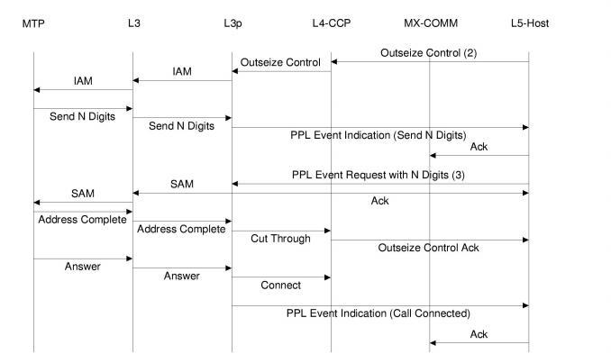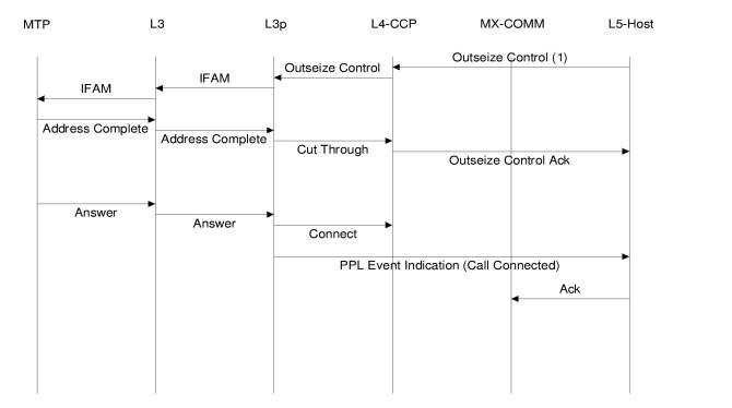 The following is a call flow diagram in which a successful call is originated from the host. All address digits are present in the Outseize Control message, therefore an IFAM is issued to the lower layers.