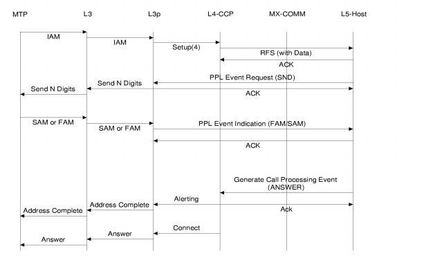 A Digital Main Switching Unit (DMSU) must be able to process IAM and IFAM messages since this type of Excel platform may appear between two LSUs. The more complicated case is the reception of an IAM. L3P IUP analyzes the number of Address digits received. If the required number of digits has not been received within a configurable amount of time, as defined via Config Byte settings, the appropriate number of Send N Digit messages will be issued until the digit count is satisfied.